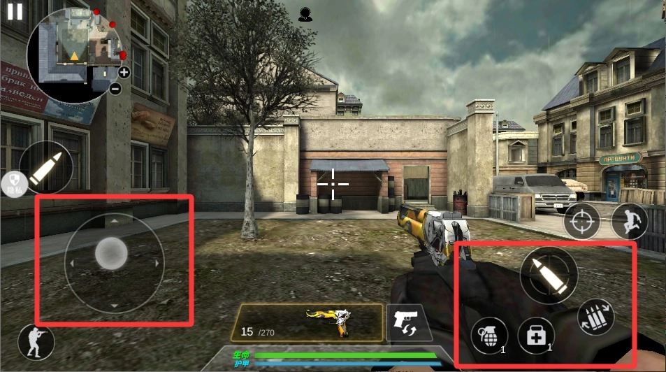 4、左手滑动控制角色走位躲避攻击,右手点击屏幕瞄准射击,精准爆头可造成额外伤害快速歼敌。