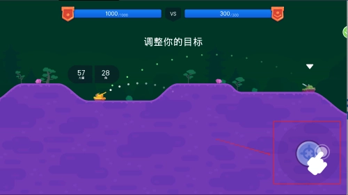 1、拖动右侧的拉杆,把落点瞄准对面的坦克。