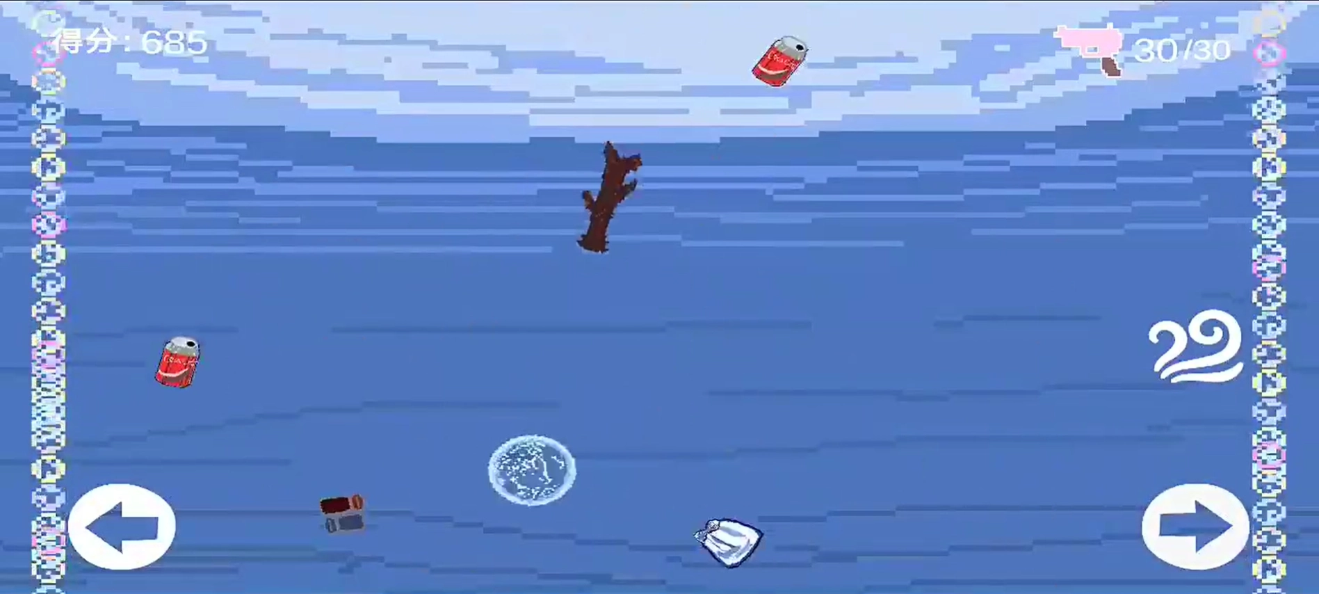 2、借助发射小泡泡来清理易拉罐与垃圾袋,确保路线顺畅,防止前进的道路被堵塞。