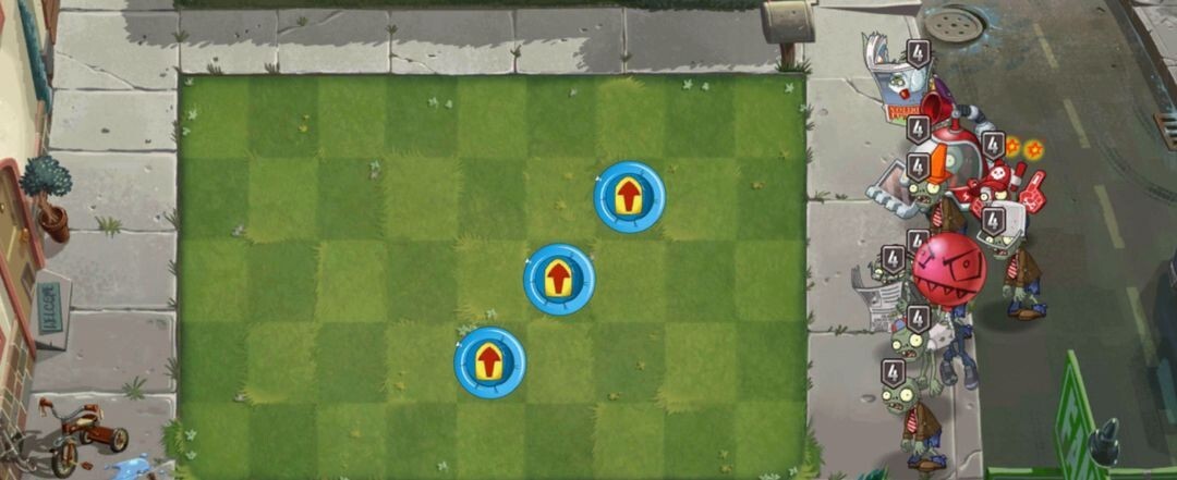 玩法改变:出现压力板与圆环,压力板会推动圆环旋转,压死植物和攻击僵尸。