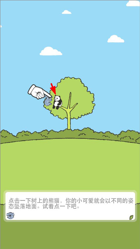 1、玩家打开点击树上的熊猫降落至地面,收集熊猫;