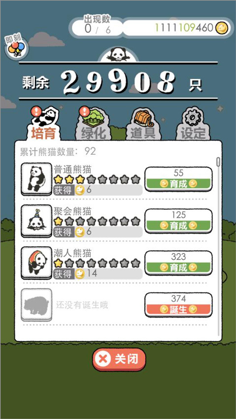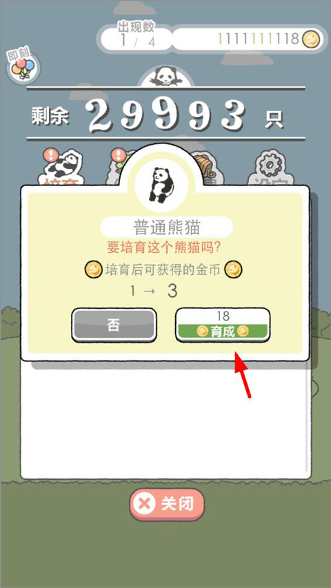 通过使用金币来育成熊猫和诞生新的熊猫。