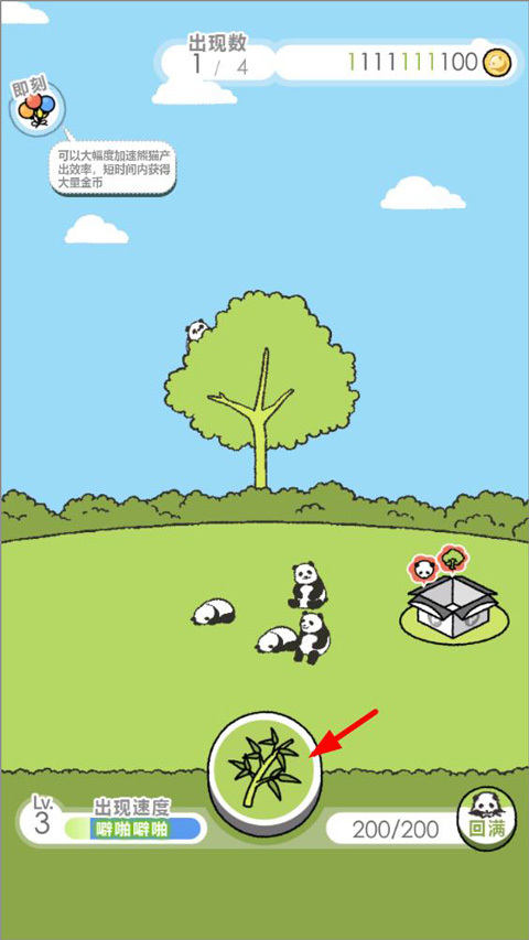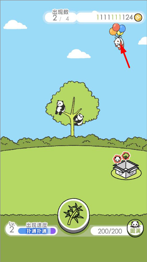 5、点击悬挂气球的粉红熊猫可以在短时间内大幅提高熊猫的生产速度;