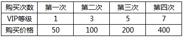 A2:船长大大初始门票数量为20(根据VIP等级不同初始数量有一定差异),通常情况下门票会随着时间的流逝自然恢复,每一小时恢复一个望远镜。当然,大家也可以通过购买的方式直接获取望远镜,目前每天最多能购买4次望远镜,VIP等级越高享有的购买次数越多,具体如下: