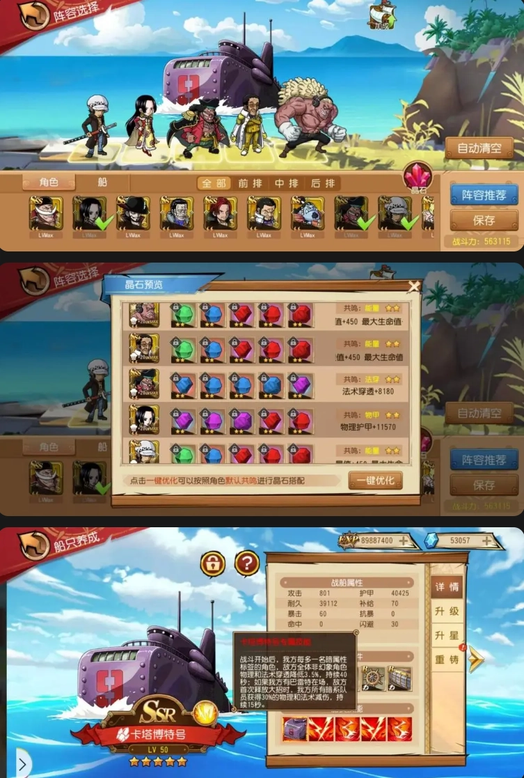 1、主流最佳阵容:突破罗(能量)+突破汉库珂(物甲)+突破黑胡子(法穿)+突破黄猿(能量)+巴雷特(能量)【船技:卡塔博特号】