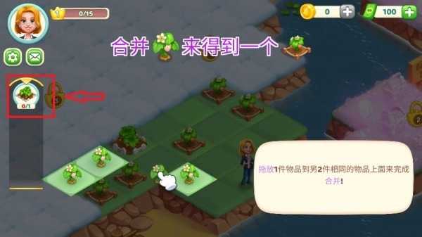 3、依照左侧的任务目标指示,合并出目标指定的元素。