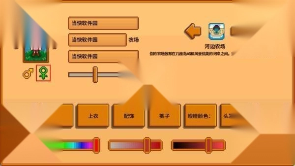 2、点击创建后可以设置姓名、农场名、外表设置,全部设置完成后点击右下方的“√”即可
