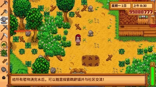 7、走出房间后可以在附近开始开荒,左侧是工具栏