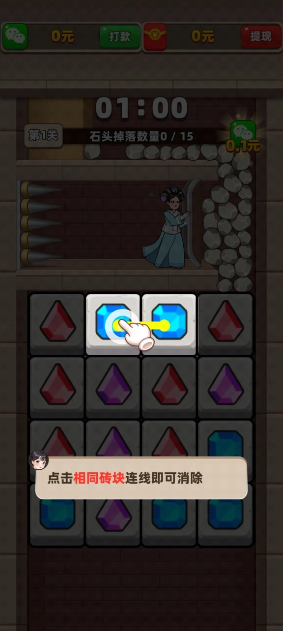 点击相同砖块连线就能消除。