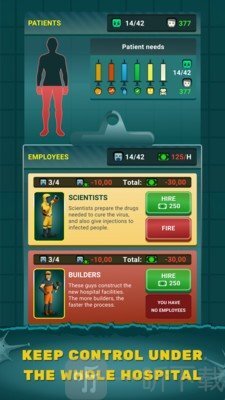 这是一款超有趣的僵尸医院模拟经营类大亨游戏!在游戏里,你能雇佣员工、建造设施,既要治愈感染者,又得努力防范爆发性攻击,还得给医护人员配备高品质设备,快来体验吧!