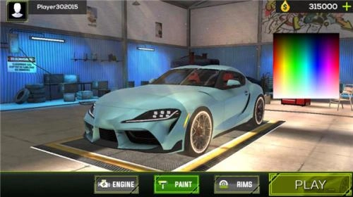 2、玩家进入后点击paint就能够更改车身颜色等装备自己的赛车,然后点击play开始。