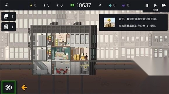 3、点击左下角的建造按钮,可以为大楼建设如办公室,餐厅等设施