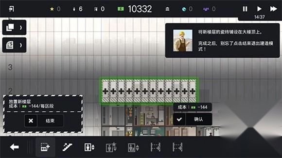 6、长按屏幕可以增添新的楼层区域,快来丰富我们的摩天大楼吧
