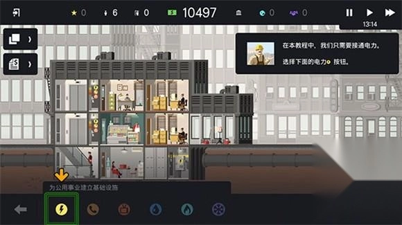 5、建造好之后我们可以为房间添加如水电网络等基础设施,通过右上角可以控制时间的流速