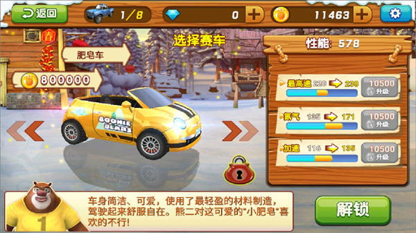 《熊出没之雪岭熊风3D赛车》还有“熊出没之雪岭熊风高级版”“熊出没之3D赛车”等别称,它是一款由同名动漫改编的赛车竞速类游戏。游戏以赛车竞速为核心,融入了《熊出没》动画的经典元素,不仅画面酷炫、操作流畅,还包含多种汽车和超萌角色。玩家加入游戏后,就能领取丰厚的签到奖励。