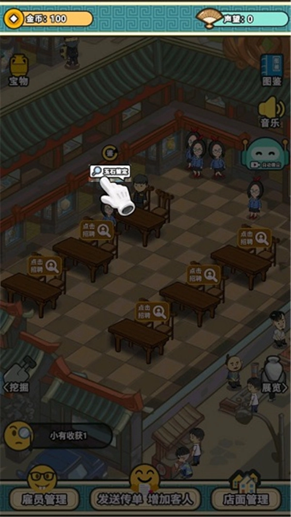 3、招聘能力各异的鉴定员工,提高店铺声望与人气。