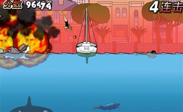 2、在充满激情的音乐氛围中,玩家需要操控一只鲨鱼,无论是各类交通工具还是人类,都能成为它破坏的目标,玩家可以利用鲨鱼锋利的牙齿将人类消灭。