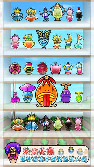 完成物品收集,组合洗发水,以便拯救脱发大叔。