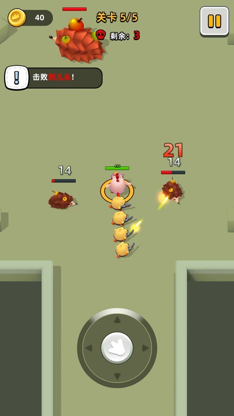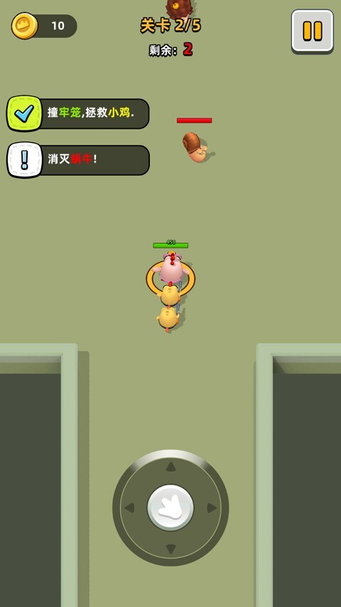 2、进入游戏后,界面会呈现如图所示的内容,玩家需要通过滑动屏幕来操控小鸡,使其自动攻击敌人。