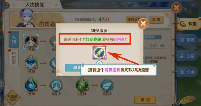 ②随后会弹出窗口,最后确认使用“转职卷轴”就能完成转职。