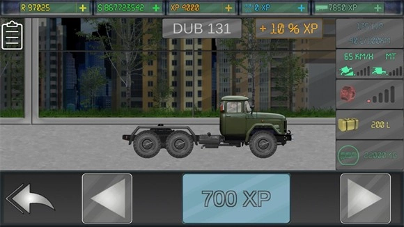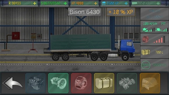 2、选好卡车和货箱后点击界面的第二个按钮可以对卡车进行改装,能升级的卡车的各个配件。