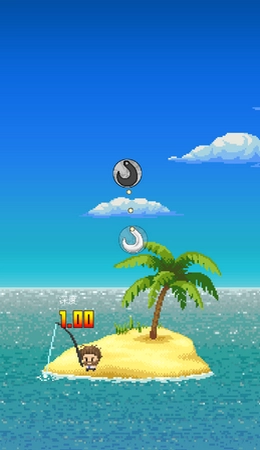 2、通过拖拽屏幕来疾行拉扯你的钓鱼竿,在荒岛中进行垂钓获取食物。