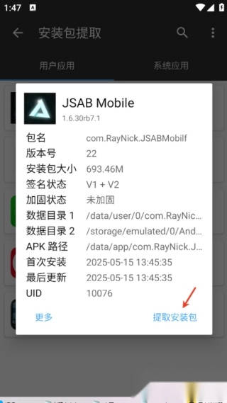 2、打开mt管理器,点击左上角三条杠,然后点击提取。