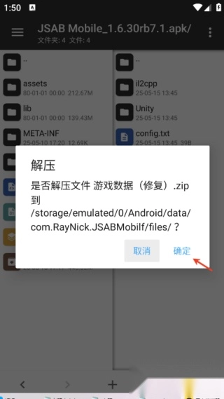 7、然后选择左边的数据.zip解压到右边点击确定。