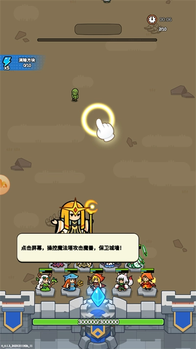 2、点击界面即可对敌人发起攻击,操控魔法塔对出现的敌人进行对抗,下面的英雄也会对敌人发起战斗;