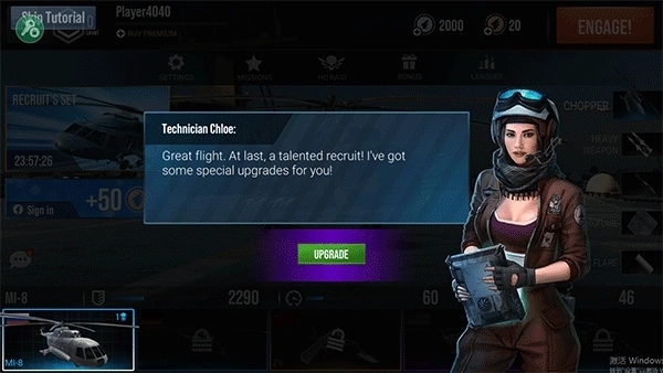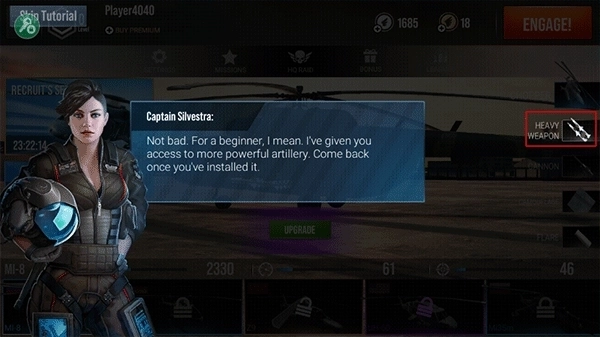 1、要进入这里,你得先升级装备!点击右下角的“直升机”按钮来完成升级操作。