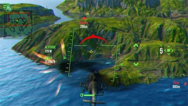4、还海上会有很多敌军的飞机攻击你,你可以通过左上角的地图可以查看到其他飞机的位置。