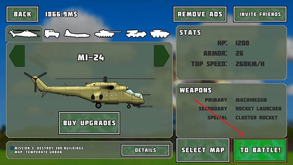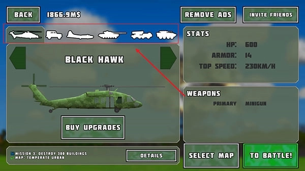 3、当购买成功后,点击【BUYUPGRADES】可进行武器升级