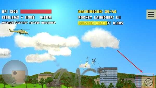 6、通过移动轮盘控制方向,通过点击屏幕位置发射子弹或者炮弹