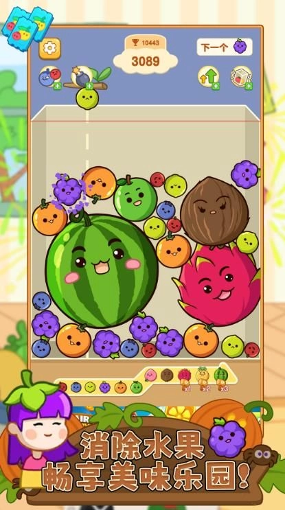 1、从最小的水果开始合成,逐步升级,体积慢慢变大,最终实现完美消除。