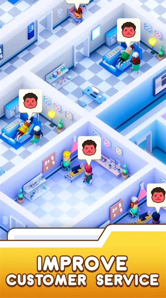 4、多人合作玩法:玩家可以邀请好友一起经营医院,合作解决病人的问题,共同建立医院帝国。中有各种不同的设施,玩家可以根据自己的需要升级设施,提高医院的经营效益。