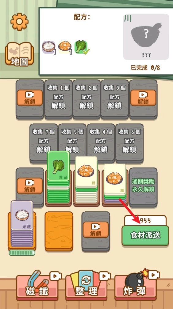6、凑齐了上方的食材之后就可以解锁菜谱。
