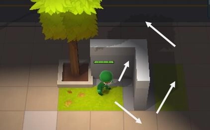 因为这款同样有阴影、草丛,所以可以通过卡视野走位甩掉警察。