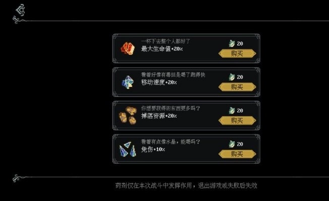 5、玩家可以在药剂师这里购买各种增益药剂。