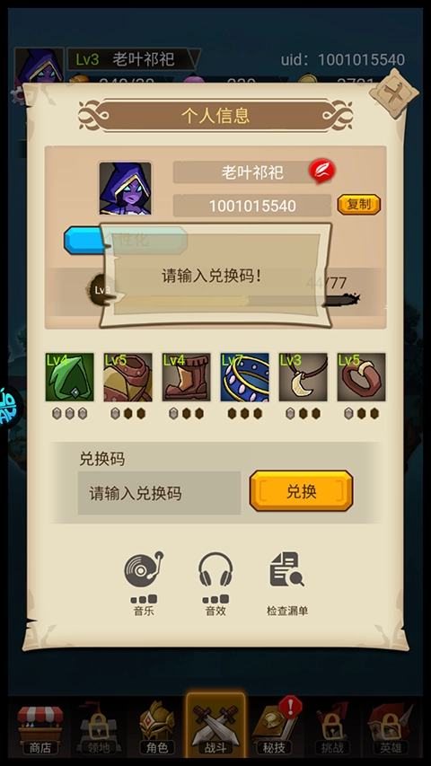 然后在弹出的界面输入兑换码(兑换码需要通过第五关才可以开启兑换)