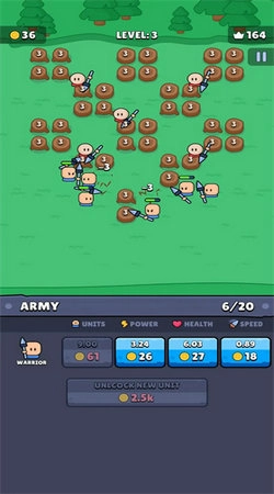 在《闲置勇士》里,玩家可以自由搭配多样兵种,不同类型的士兵能够相互组合,从而组建全新的军队,打造出最强的士兵阵容,以此战胜更多敌人,顺利闯过战斗关卡。