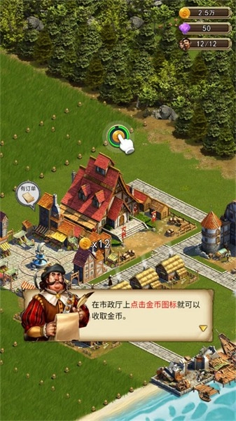 4.市政厅是玩家收取金币的地方。点击市政厅中的金币图标即可领取玩家的税收。