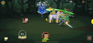 大娃骑乘巨灵象/巨灵神象后,普攻变为前排目标,骑乘时,获取类似于小金刚骑乘神兽的攻击方式,站位依然在前排,普攻效果如动图所示。