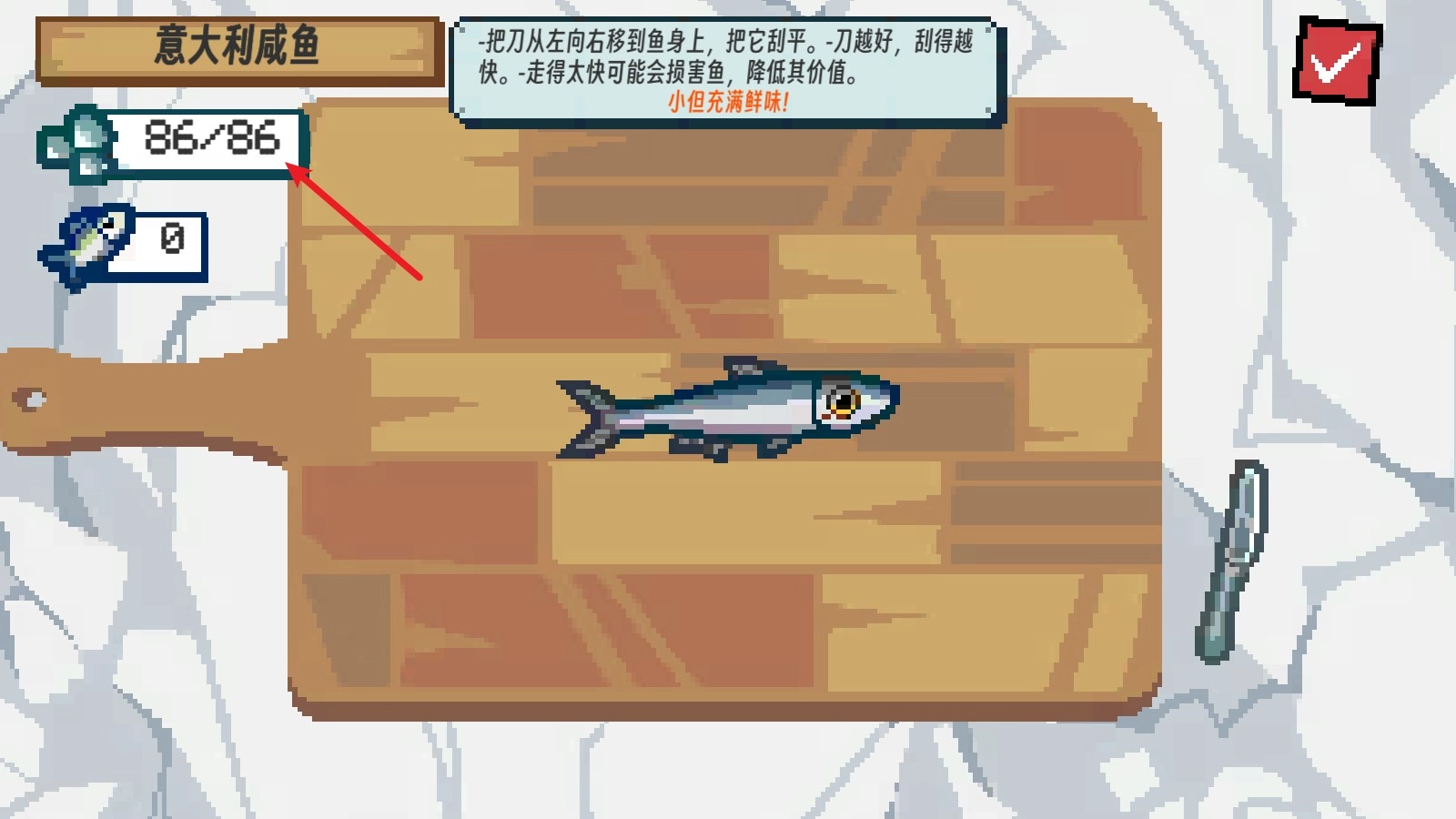 3、钓上来鱼之后,我们就可以前往船舱当中刮鱼鳞了。