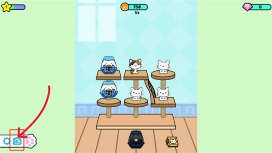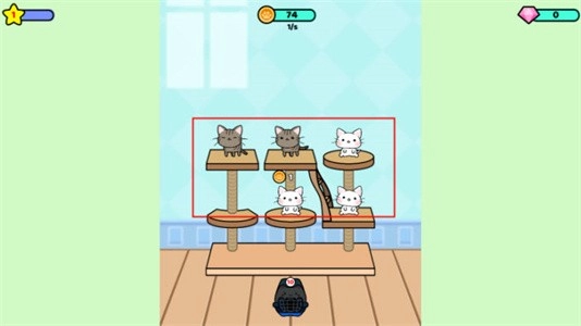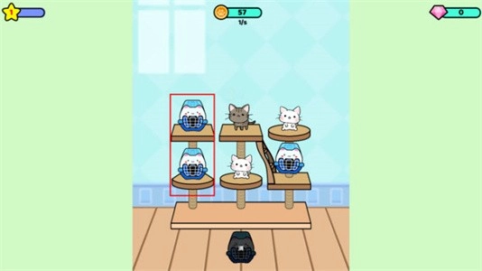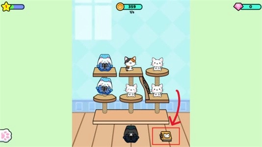 2、点击架子上的猫笼,把新猫咪放出来,看它们跳跃的样子真可爱!