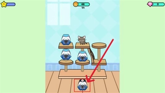 1、耐心等待屏幕下方猫笼的倒计时走完,当数字显示为0时,就会有新的猫咪出现。