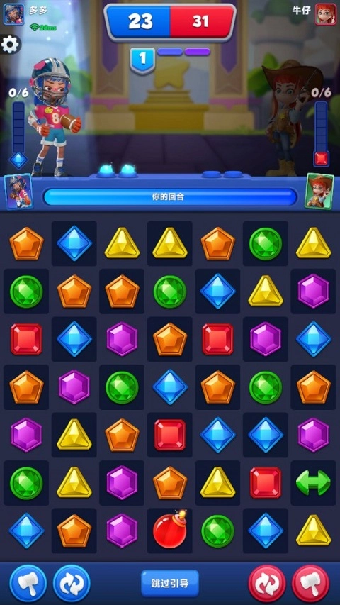 宝石大乱斗是竞技版的三消,和常见的过关斩将、关卡越高难度越高的三消不同,它的侧重点除了三消,还有竞技。