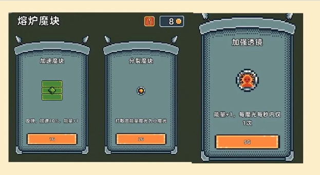 《魔光之戒铸造师》是一款像素风格的闯关游戏。玩家可以把自己想象成铁匠,虽然不需要参与战斗,但需要通过不断挑战关卡来获取魔戒。在游戏过程中,玩家要利用分裂和反射模块,收集从魔光之源发射出的光点,收集的光点越多,得分就越高。这有点像以前的弹弹球游戏,不过这次的核心玩法是收集光点,而非敲砖块。感兴趣的玩家不妨一试,目标是用最少的模块获得最高的分数。