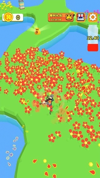 2、玩家需要到达上方的花丛区进行采集,右上角瓶子采集完成即可。