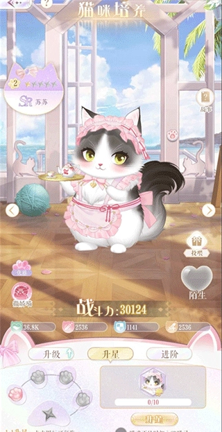 1、猫咪可以通过升级,升星和进阶三个方式进行养成,提升战力,升级需要消耗喵币,可以通过小镇经营和猫咪演出应援获得。
