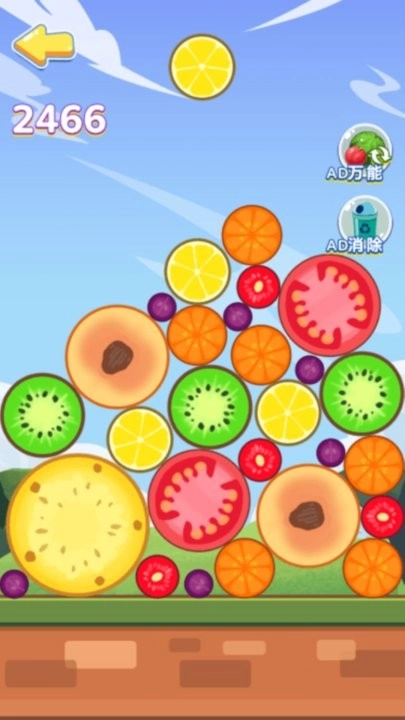 1、基础操作采用点击拖拽的直觉化交互,将相邻的同种水果合并即可产生高级水果。